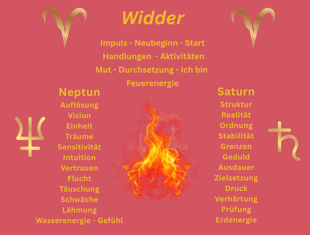 Dieser doppelte Eintritt in den Widder steht für einen inneren wie kollektiven Reset – ein Aufbruch in ein neues Bewusstsein. Die Verbindung von Vision (Neptun) und Form (Saturn) lädt dazu ein, Träume endlich zu verwirklichen und Klarheit im Handeln zu finden.